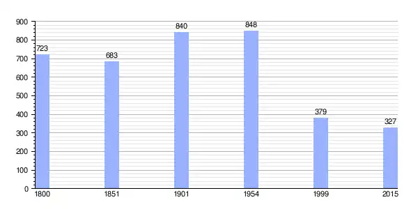 Los datos demográficos contemplados en este gráfico de la comuna de Faverolles-en-Berry se han cogido de 1800 a 1999 de la página francesa EHESS/Cassini,[5] y los demás datos de la página del INSEE.[6]