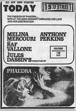 - ↑ American Film Institute (ed.). «Phaedra». Archivado desde el original el 9 de octubre de 2016. Consultado el 29 de mayo de 2017.