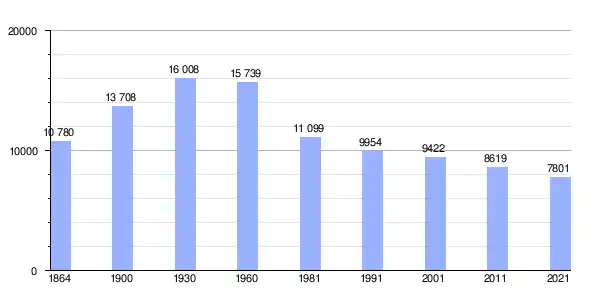 | Gráfica de evolución demográfica de Ferreira do Zêzere entre 1864 y 2021 |