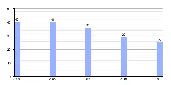 | Gráfica de evolución demográfica de Ferreiros (parroquia) entre 2000 y 2019 |