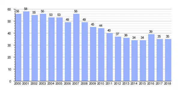 | Gráfica de evolución demográfica de Ferreiros entre 2000 y 2018 |