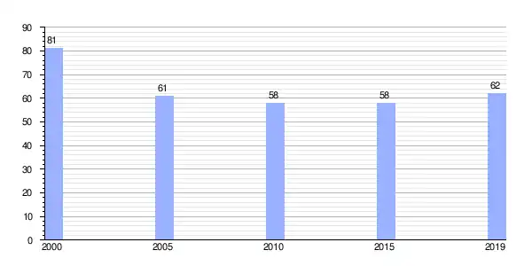 | Gráfica de evolución demográfica de Ferreiros de Arriba entre 2000 y 2019 |