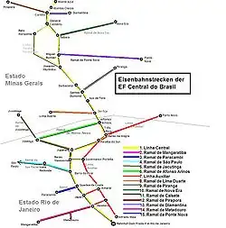 Mapa de las líneas y ramales del Ferrocarril Central de Brasil | |||||