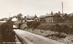 - Friockheim Junction; convergencia de la ruta ferroviaria de Aberdeen desde Glasterlaw;