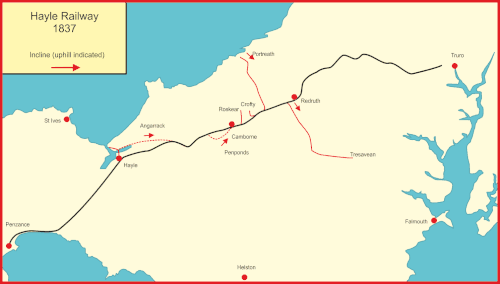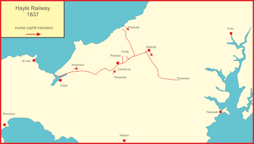 El Ferrocarril de Hayle había sido inaugurado como un ferrocarril minero en 1837, enlazando las minas de cobre y de estaño situadas cerca de Redruth con los puertos marítimos de Hayle y Portreath. La línea tenía una ingeniería muy primitiva, con rieles ligeros de sección en T sobre bloques de piedra.