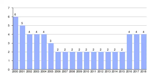| Gráfica de evolución demográfica de Fervencedo entre 2000 y 2018 |