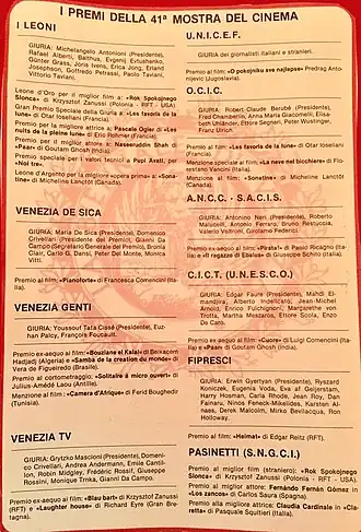- ↑ «Premi 41. Mostra Internazionale del Cinema». sicvenezia.it. Consultado el 1 de abril de 2018.