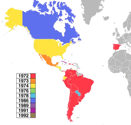 Alcanzó la cifra de 25 países participantes en 1992 y 1993.