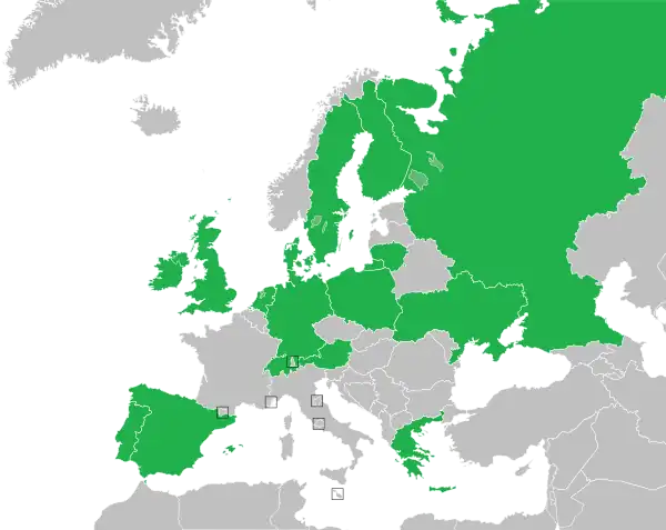 - ↑ «The 16 participants Eurodance». Eurovision.TV. Archivado desde el original el 25 de agosto de 2007. Consultado el 9 de enero de 2012. «Austria (ORF), Denmark (DR), Finland (YLE), Germany (ARD/WDR), Greece (ERT), Ireland (RTE), Lithuania (LRT), the Netherlands (NPO/TROS), Poland (TVP), Portugal (RTP), Russia (RTR), Spain (TVE), Sweden (TV4), Switzerland (SRG-SSR), Ukraine (NTU), the United Kingdom (BBC)».