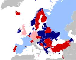 Países participantes en una semifinal (36). Países clasificados directamente para la final (5). Países participantes en una semifinal que no participaron en 2008 (1). Países que participaron en 2008, pero no en 2009 (2). Países que no participan desde hace más de un año (5).