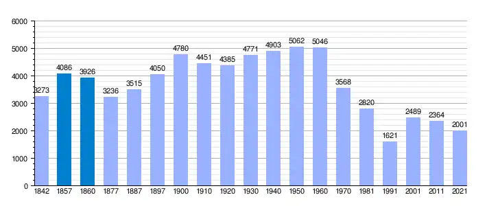 Gráfica de evolución demográfica de Fiñana[7] entre 1842 y 2021