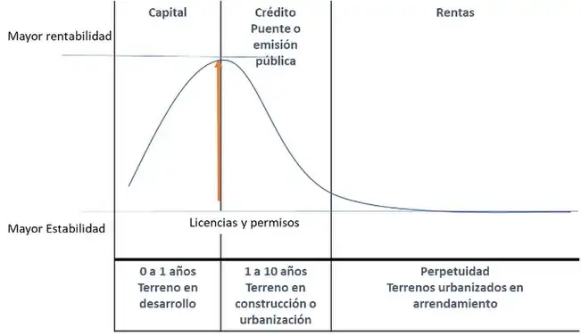 | Rentas | Los inmuebles ya estabilizados son rentados y se obtiene un rendimiento | Baja | Alta |