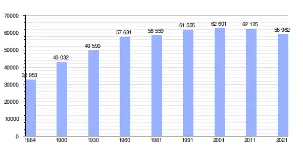 | Gráfica de evolución demográfica de Figueira da Foz entre 1864 y 2021 |