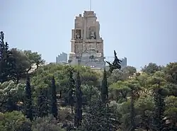 - El monumento de Filopapos, un monumento funerario construido entre 114 y 116, en honor de Julio Antíoco Filopapos. Está construido en mármol blanco del Pentélico y contiene varios conjuntos escultóricos bien conservados.[1]
