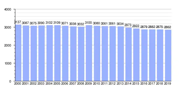 | Gráfica de evolución demográfica de Finisterre (parroquia) entre 2000 y 2019 |