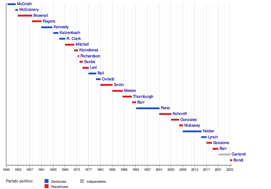 Herbert Brownell, Jr. | 21 de enero de 1953 | 23 de octubre de 1957 | Dwight Eisenhower |
