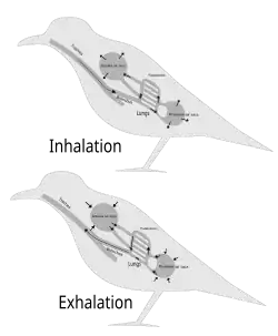 Los sistemas respiratorios de los dinosaurios con sacos de aire similares a los de las aves pueden haber sido capaces de mantener niveles de actividad más altos que los de los mamíferos de tamaño y constitución similares. Además de proporcionar un suministro de oxígeno muy eficiente, el flujo de aire rápido habría sido un mecanismo de enfriamiento eficaz, que es esencial para los animales que están activos, pero son demasiado grandes para eliminar todo el exceso de calor a través de la piel.[34]
