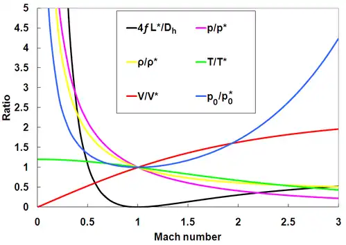 Asumiendo que el coeficiente de fricción se mantiene constante a lo largo del conducto, la ecuación diferencial se puede resolver fácilmente.[1][2] Sin embargo, no es fácil calcular los factores de fricción de un flujo supersónico (especialmente cuando se hace hipersónico).