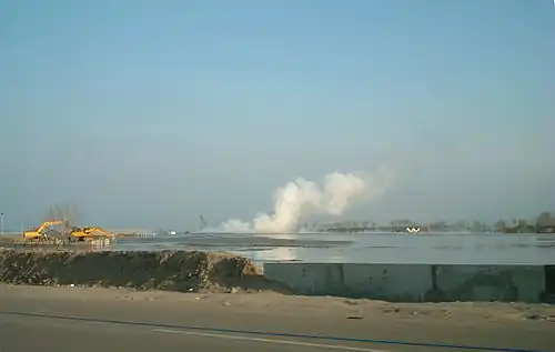 - ↑ a b Sidoarjo mud flow from NASA's Earth Observatory, posted December 10, 2008. This article incorporates public domain text and images from this NASA webpage.