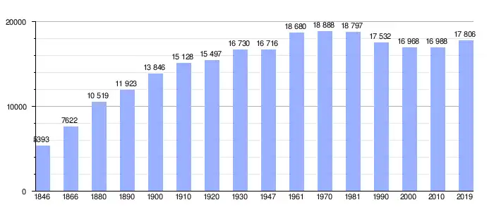 Todos los datos históricos relativos al actual municipio, el siguiente gráfico refleja su evolución demográfica, incluyendo municipios después de efectuada la fusión el 1 de enero de 1977.