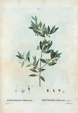 - ↑ Flora of China: Fontanesia genus page, Fontanesia philliraeoides species page