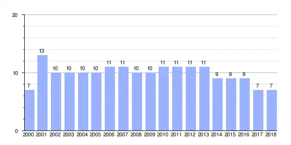 | Gráfica de evolución demográfica de Fontecoba entre 2000 y 2018 |