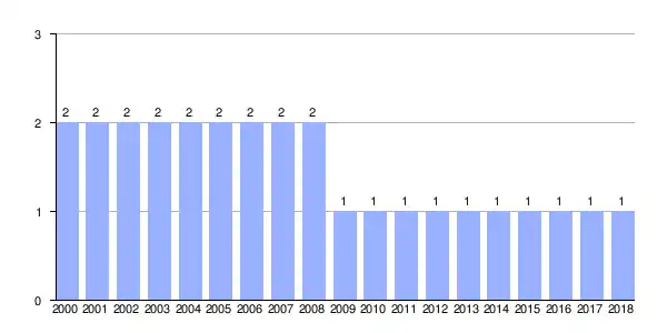 | Gráfica de evolución demográfica de Fontelas entre 2000 y 2018 |