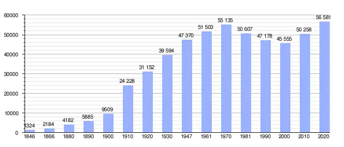 El 1 de enero de 2019, contaba con 56.289 habitantes, lo que supone una densidad de población de 9.006,24 habitantes por km² al tener un área total de 6,25 km².