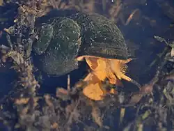 Un miembro de agua dulce (lacustre) de Viviparidae (caracol). |