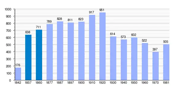 | Gráfica de evolución demográfica de Fornillos de Fermoselle[8] entre 1842 y 1981 |