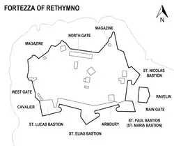 - ↑ Wass, Stephen. «Rethymno». fortified-places.com. Archivado desde el original el 19 de agosto de 2015.