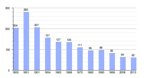 Los datos demográficos contemplados en este gráfico de la comuna de Fournoulès[4] se han cogido de 1800 a 1999 de la página francesa EHESS/Cassini, y los demás datos de la página del INSEE.[5]