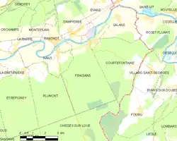 - Situación de Fraisans en un mapa de Francia y de comunas limítrofes (enlace roto disponible en Internet Archive; véase el historial, la primera versión y la última). (en francés)