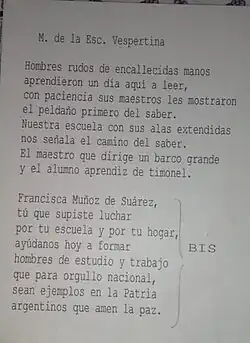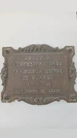 - ↑ a b Libro de Oro de la Escuela Vespertina Nº88 "Francisca Muñoz de Suarez"