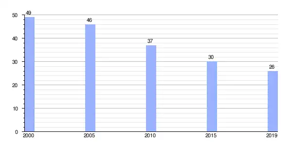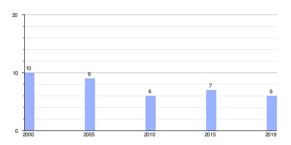 | Gráfica de evolución demográfica de Francos (aldea) entre 2000 y 2019 |