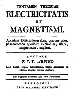 Franz Ulrich Theodosius Aepinus (Rostock, capital del ducado alemán de Mecklemburgo, 13 de diciembre de 1724 - Dorpat (Estonia), 10 de agosto de 1802) fue un científico ruso, de origen alemán, precursor de los estudios de los fenómenos eléctricos y del magnetismo.[1]