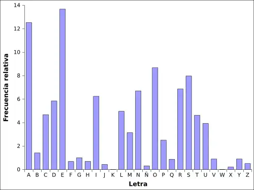 - ↑ a b Agustín (administrador de Kriptópolis). «Frecuencia de las letras en castellano: "La Regenta" - Kriptópolis, criptografía y seguridad.». Archivado desde el original el 16 de diciembre de 2013. Consultado el 2 de mayo de 2015.