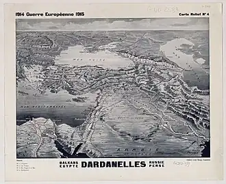 ![]() Mapa de 1915 del teatro de operaciones en Oriente Medio. | ||||
