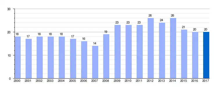 | Gráfica de evolución demográfica de Fresno de Losa entre 2000 y 2017 |