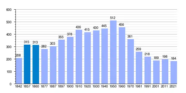| Gráfica de evolución demográfica de Fresno del Río[1] entre 1842 y 2021 |