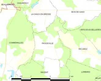 - ↑ Página donde se especifican, entre otras cosas, los datos demográficos de la comuna de Froideville de Jura entre los años 1793 y 2006. Consultado el 28 de junio de 2016 (en francés)