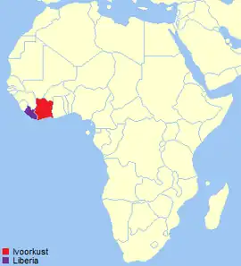 ![]() Localización de Costa de Marfil (rojo) y Liberia (morado).