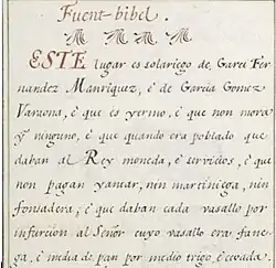 Este lugar es solariego de Garci Fernández Manriquez, é de Garcia Gomez Varaona, é que es yermo, é que non mora y ninguno, é que cuando era poblado que daban al Rey moneda, é servicios, é que non pagan llantar, nin martiniega, nin fonsadera, é que daban cada vasallo por infurción al Señor cuyo vasallo era fanega é media de pan por medio trigo é cevada.Behetrías de Castilla, 1352[9]