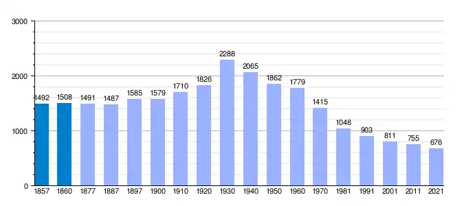 | Gráfica de evolución demográfica de Fuente-Tójar[1] entre 1857 y 2021 |