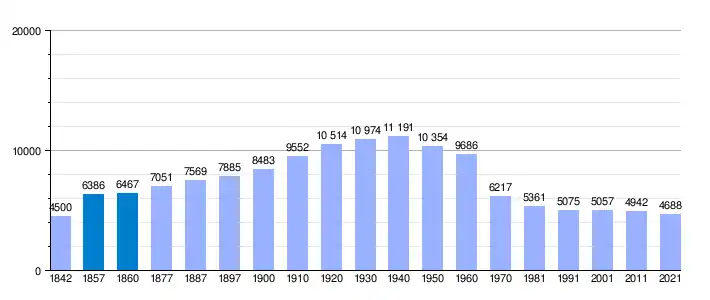 | Gráfica de evolución demográfica de Fuente de Cantos[2] entre 1842 y 2021 |