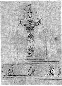 En el año 1800 en una escala en el puerto de Santa Cruz de Tenerife, en su viaje a Australia, de la expedición científica del capitán Nicolás Baudin, uno de sus dibujantes, Le Brun, realizó un dibujo de la Pila, acompañado del siguiente texto: “Fuente de lava situada en la Gran Plaza de la Villa de Santa Cruz de Tenerife”. En la litografía de ese dibujo realizado en 1812 por Testard, se observa que el pedestal que soporta la copa que corona la fuente es mayor que el actual y que, además, tiene dos cartelas con las armas reales de España; por lo tanto, al caerse, la columna sustentadora se rompió siendo sustituida por una más corta, y más elemental.[1][4]