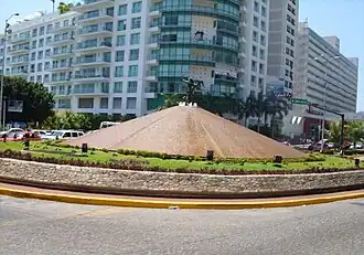 Se sitúa en la avenida Costera Miguel Alemán en un punto céntrico del recorrido donde convergen la entrada a la Costera, el camino hacia la Zona Tradicional, el camino hacia la Zona Dorada y el límite con la Zona Federal Marítima. Está rodeada por numerosos centros comerciales, hoteles y cercana a la reconocida Playa La Condesa.