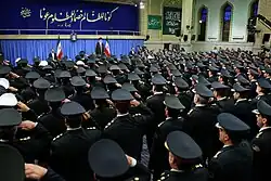 Los comandantes, oficiales y funcionarios de la Fuerza de seguridad se reunieron el Ayatolá Alí Hoseiní Jamenei, comandante y jefe de las fuerzas armadas, el 8 de mayo de 2016. Intensamente preocupado por cuestiones de seguridad interna en el entorno posterior a 1953, Mohamed Reza Pahlavi autorizó el desarrollo de uno de los sistemas más extensos de agencias de aplicación de la ley en el mundo en desarrollo. La Gendarmería Imperial iraní (ژاندارمری شاهنشاهی ایران) y la Policía Nacional (Shahrbani شهربانی o Nazmiyeh نظمیه) ganaron en número y responsabilidades. La organización de la policía secreta, SAVAK, ganó notoriedad especial por su excesivo celo en "mantener" la seguridad interna. Pero como en las fuerzas armadas regulares, el estilo de gestión del sha virtualmente eliminó toda coordinación entre estas agencias porque tendía a mezclar al personal del ejército entre sus deberes ordinarios y posiciones temporales en las agencias de seguridad interna, con el fin de minimizar la posibilidad de golpes organizados contra el trono. A esta lista de deficiencias institucionales se sumó la imagen pública importantísima de las agencias, envuelta en el misterio y el miedo.