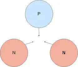 La interacción fuerte fundamental exhibe tal comportamiento, el ejemplo más importante es la estabilidad observada experimentalmente para el isótopo helio-3, que se puede describir como una entidad de grupo cuántica de 3 cuerpos de dos protones y un neutrón [PNP] en superposición estable. Se conoce evidencia directa de una fuerza de 3 cuerpos en el helio-3: [1]. La existencia de agrupaciones [PNP] estables cuestiona los modelos del núcleo atómico que restringen las interacciones de los nucleones dentro de las conchas a los fenómenos de 2 cuerpos.e).La interacción de tres nucleones es fundamentalmente posible porque los gluones, los mediadores de la interacción fuerte, pueden unirse a sí mismos. En la física de partículas, las interacciones entre los tres quarks que componen los hadrones se pueden describir en un modelo de diquark que podría ser equivalente a la hipótesis de una fuerza de tres cuerpos. Existe una creciente evidencia en el campo de la física nuclear de que existen fuerzas de tres cuerpos entre los nucleones dentro de los núcleos atómicos para muchos isótopos diferentes (fuerza de tres nucleones).