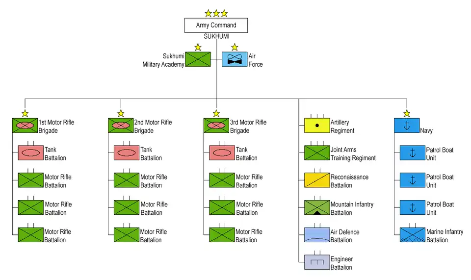 Ejército de Abjasia Armada de Abjasia Fuerza Aérea de Abjasia | |